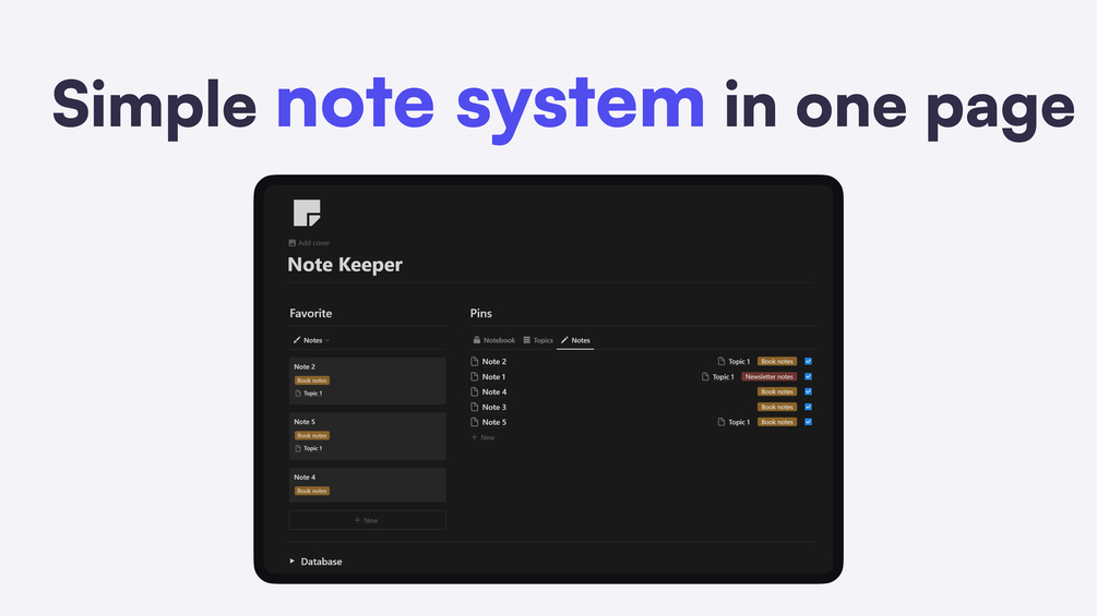 What is included in this Notion note template?